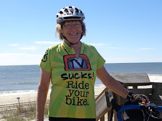 We got back to the Island Inn in time to take a shower and have a late lunch at the local diner. Fred and Doris went to the aquarium and the rest of us got in the truck and went to a bike shop on Emerald Isle. I talked with a runner in the parking lot here--her relay legs were at 9:30 last night and 3:30 this morning. That would be pretty hard to do!
